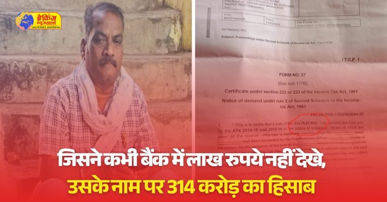मध्यप्रदेश के बैतूल जिले में रहने वाले एक गरीब दिहाड़ी मजदूर को उस समय जिंदगी का सबसे बड़ा झटका लगा, जब आयकर विभाग से उसे 314 करोड़ रुपये का टैक्स नोटिस थमा दिया गया। रोज़ाना 200-300 रुपये कमाने वाले चंद्रशेखर पंडित राव कोहाड़ इस नोटिस को देखकर पूरी तरह से हिल गए और मानसिक रूप से परेशान हो गए।