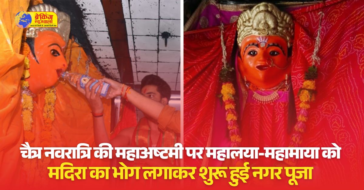उज्जैन में हर साल महाष्टमी के मौके पर नगर पूजन का आयोजन होता है। इस साल भी देवी महामाया और महालया को मदिरा का भोग लगाकर इस परंपरा का निर्वहन किया गया।