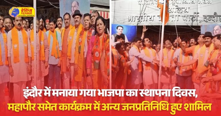 इंदौर के जावरा कंपाउंड स्थित बीजेपी ऑफिस में रविवार सुबह पार्टी का स्थापना दिवस मनाया गया। इस अवसर पर पार्टी का ध्वजारोहण किया गया और कार्यकर्ताओं को मिठाई बांटी गई। एक-दूसरे को मिठाई खिलाकर स्थापना दिवस की शुभकामनाएं दी गईं।