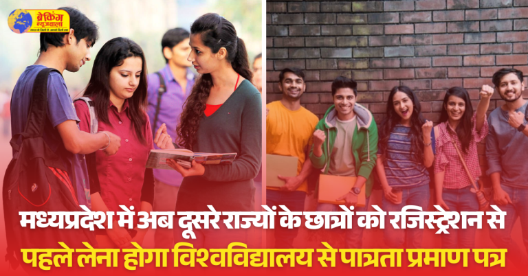 भोपाल | मध्यप्रदेश में शैक्षणिक सत्र 2025-26 से कॉलेजों में प्रवेश प्रक्रिया में बड़ा बदलाव किया गया है। उच्च शिक्षा विभाग ने अब दूसरे राज्यों से आने वाले छात्रों के लिए ऑनलाइन रजिस्ट्रेशन और काउंसलिंग से पहले पात्रता प्रमाण पत्र (Eligibility Certificate) लेना अनिवार्य कर दिया है। यह कदम प्रवेश प्रक्रिया में पारदर्शिता और अपात्र छात्रों को रोकने के उद्देश्य से उठाया गया है।