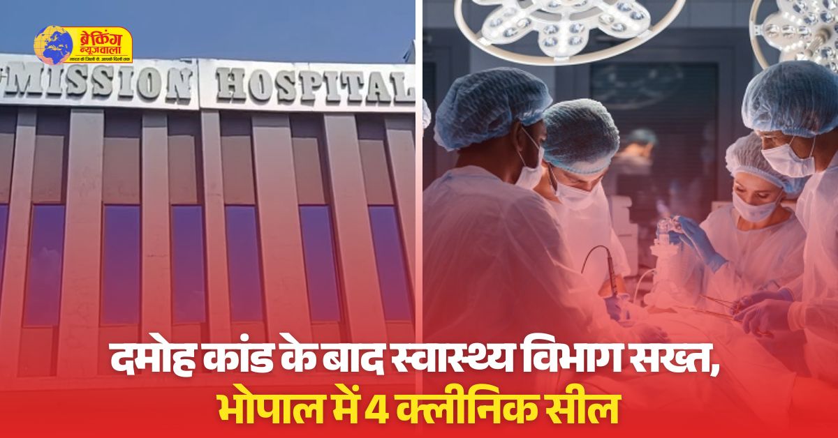 दमोह के मिशन अस्पताल में 7 लोगों की मौत के खुलासे के बाद स्वास्थ्य विभाग ने भोपाल (Bhopal) के 4 क्लीनिक (clinic) सील कर दिए है। इधर ग्वालियर (Gwalior) के 60 अस्पतालों के रजिस्ट्रेशन (registration) रद्द किए गए है। सीएमएचओ ने अस्पतालों को रजिस्ट्रेशन अपडेट कराने के निर्देश दिए है।