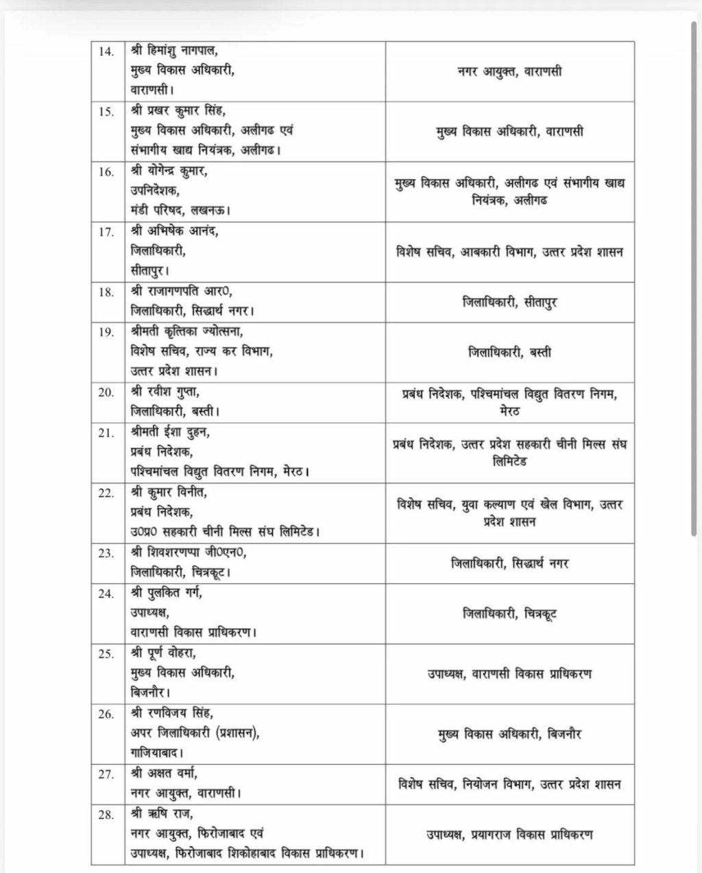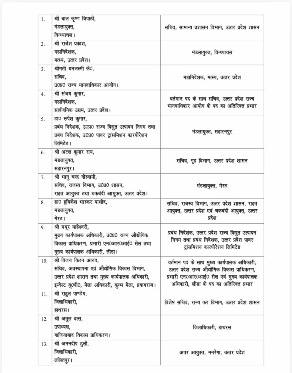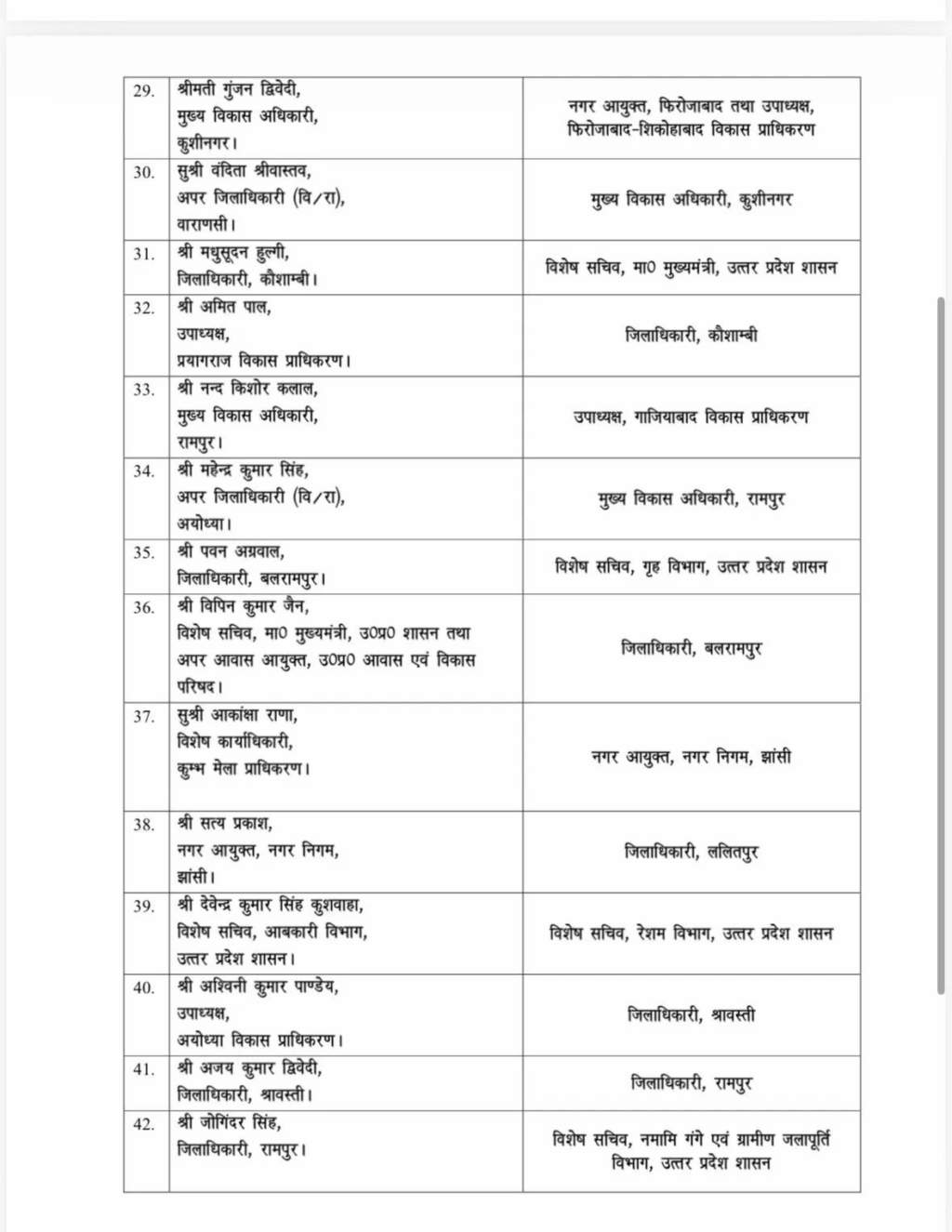 झांसी नगर निगम के नगर आयुक्त सत्य प्रकाश को अब ललितपुर का नया जिलाधिकारी बनाया गया है। अमनदीप डुली इससे पहले कृषि उत्पादन और विपणन विभाग में विशेष सचिव के पद पर तैनात थे, उसके बाद अगस्त 2025 में उन्हें ललितपुर का डीएम बनाया गया था।